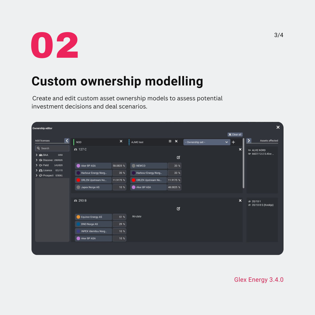 Together with custom asset ownership modelling, Glex Energy now enables you to easily assess the impact of portfolio opportunities across the value chain from exploration to production.
