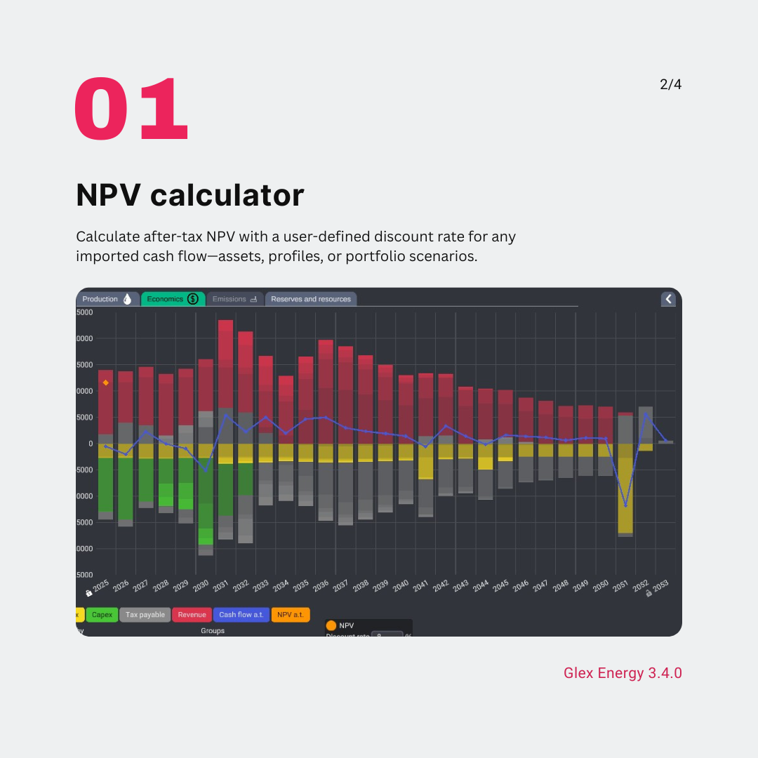 We’re excited to bring screening economic evaluation to Glex Energy through release 3.4, introducing a new on-the-fly NPV calculator.